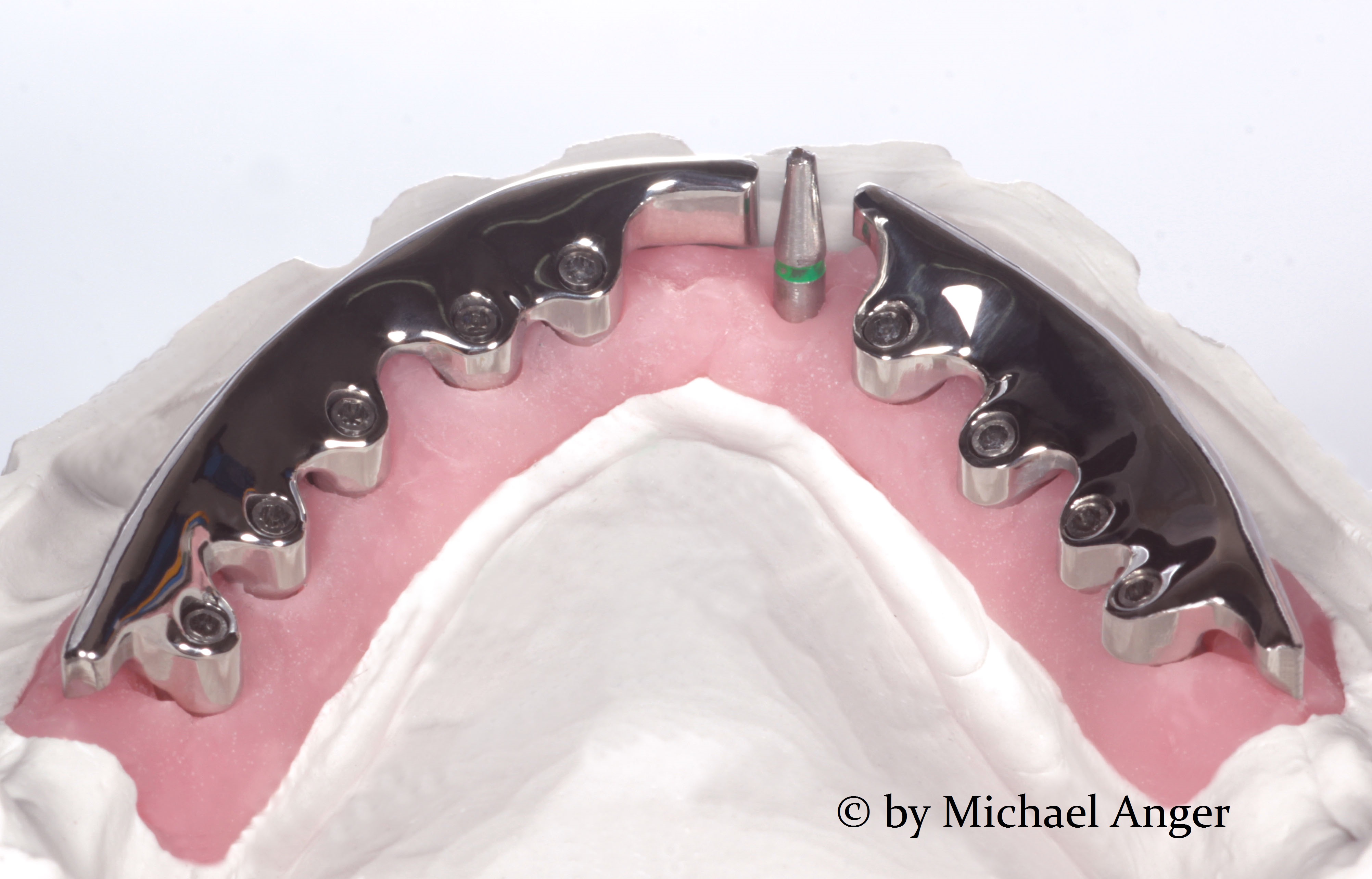 Der Metallsteg auf dem Modell mit Zahnfleischmaske von hinten. The metal bar on the model with gingival mask from the back Published 16. Oktober 2015 at 4008 × 2568 in Der Metallsteg auf dem Modell mit Zahnfleischmaske von hinten. The metal bar on the model with gingival mask from the back ← Previous Next →